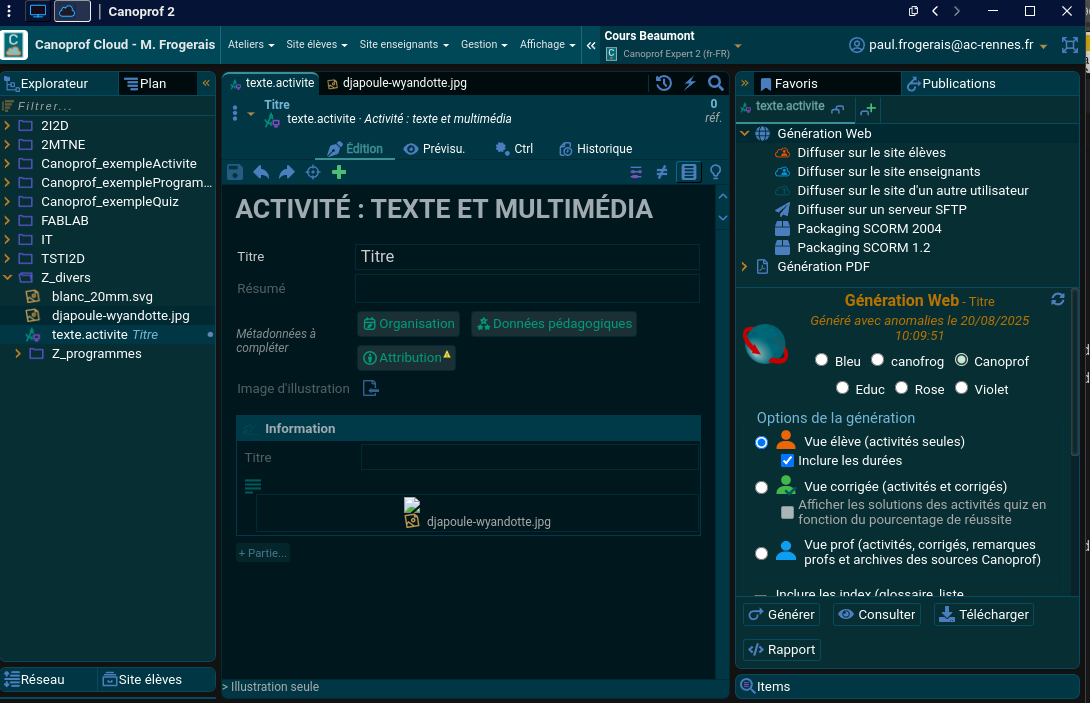 Quand je fais la même chose sur Canoprof Desktop en local sur ma machine tout fonctionne normalement. Je vais rapatrier tout en local en attendant.