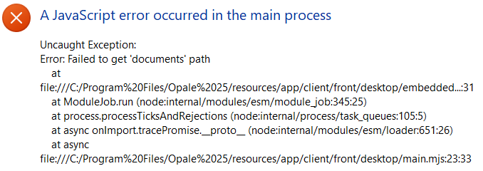 En lançant Opale25, j’ai le message d’erreur ci-dessous. Comment puis-je changer ce dossier ‘documents’ sachant que ça bloque le lancement d’Opale.