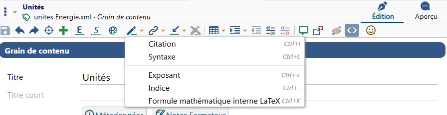 Les équation sont saisies avec ce menu ou ctkl K