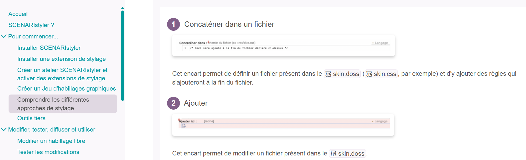 Il s’agit de définir un fichier de code déjà présent dans le skin (comme un fichier CSS ou JS) et ensuite, via l’encart en dessous, il est possible d’ajouter du code qui sera concaténé à la suite de ce fichier.