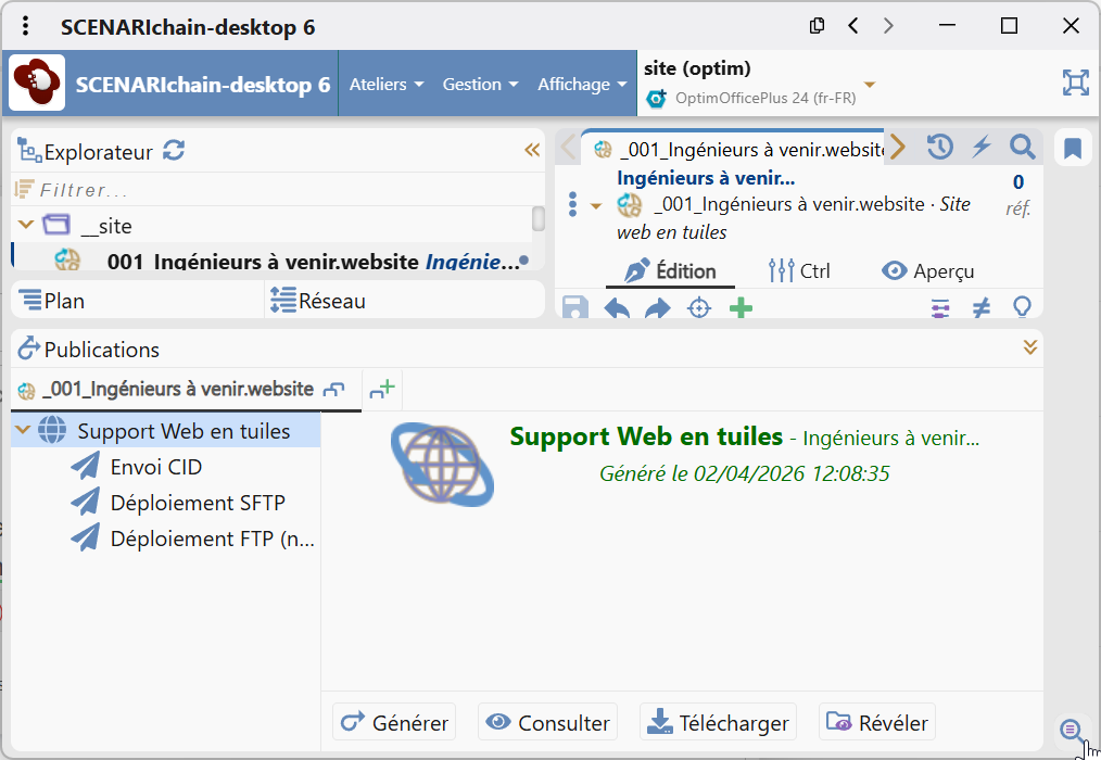 Bon je reviens sur votre message. Je viens de tester en local et sur serveur Scenari6.4.5 et en local sur Scenarichain-desktop et j’ai également certaines publications qui affichent le choix du skin et d’autres non. En particulier les publications site web et support web en tuile ne s’affichent pas sur un atelier optimplus