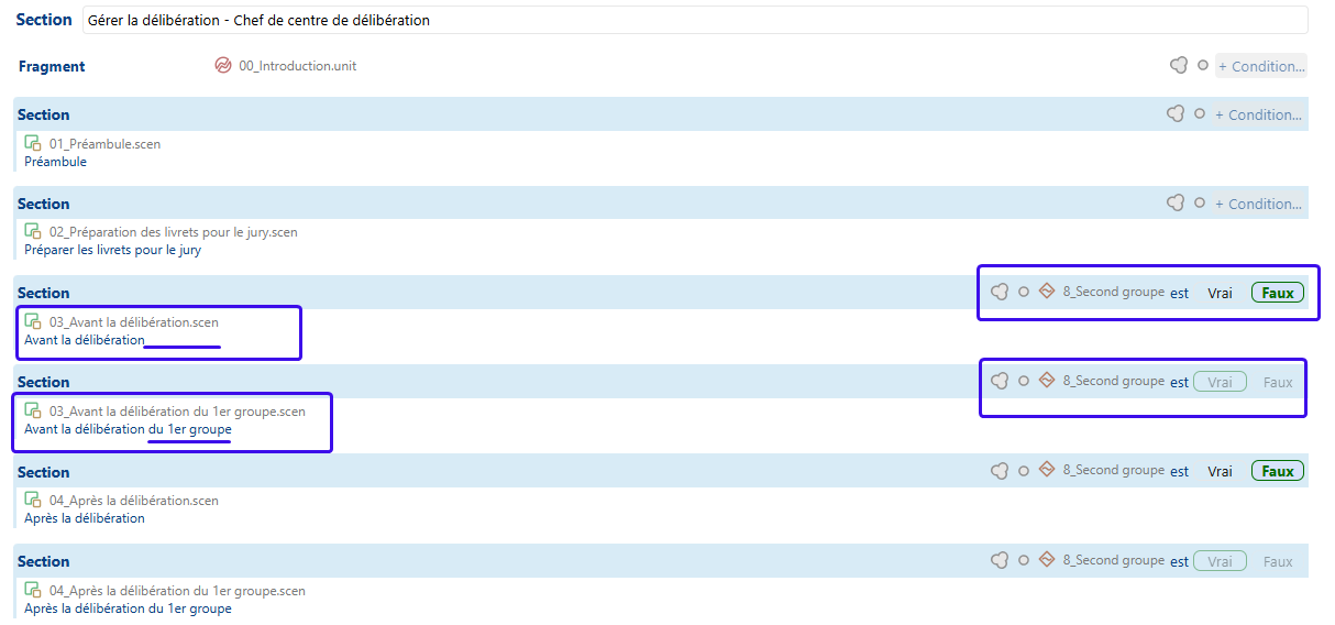 Ici, la notion de “1er groupe” est importante et présente que s’il existe un “second groupe”. Dans le reste des sous-sections, cela se gère bien avec la condition créée.