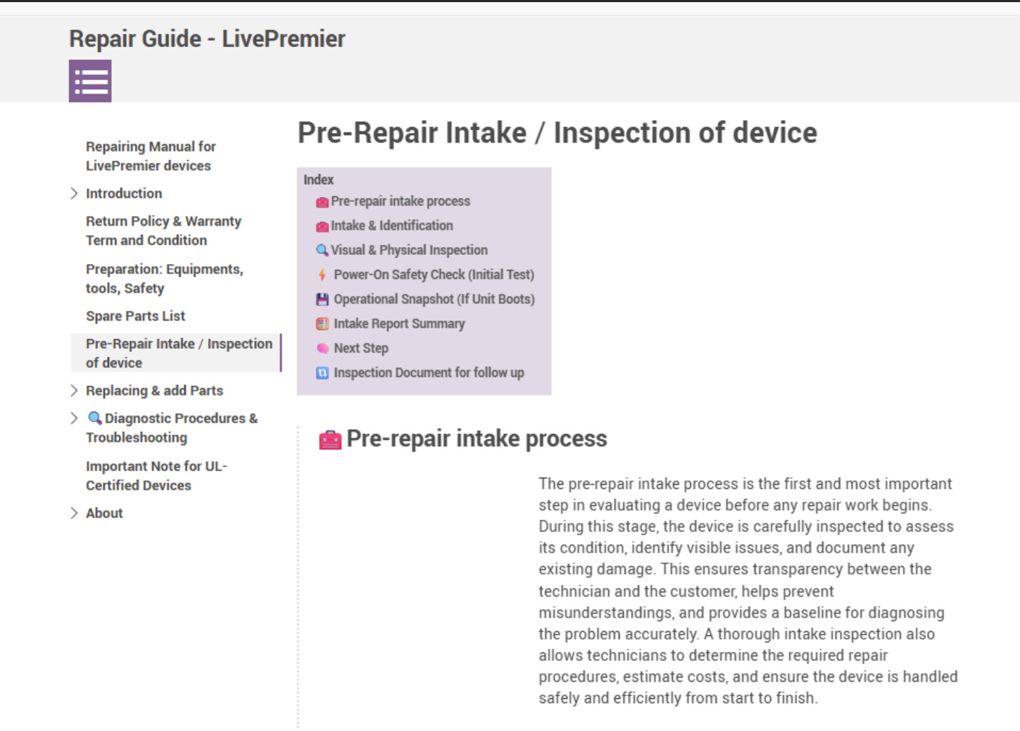En revanche, je voudrais comprendre pourquoi cela n’est pas automatique. Ma section" Pre-Repair Intake / Inspection of Device" ne se converti pas dans un mode collapsing…