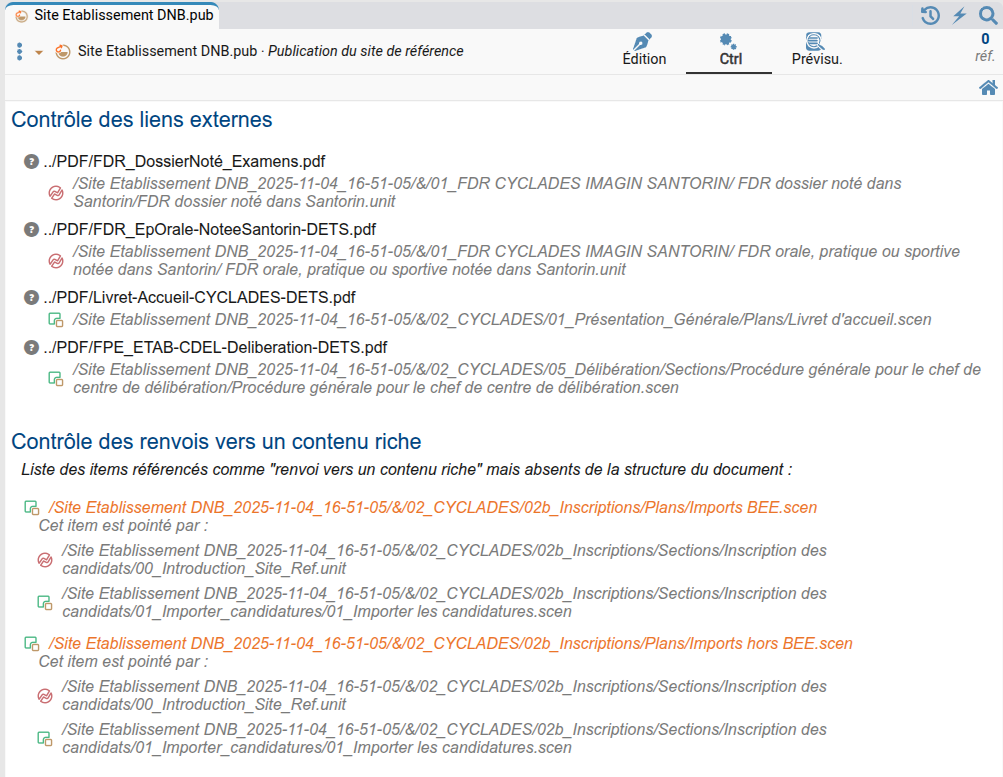 Une fois ces bugs corrigés, cette vue remonte bien les problèmes de sections orphelines dans votre contenu :