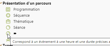 Chaque « Type de » étend en quelque sorte le modèle documentaire Parcours avec vos propres types d’items personnalisés.