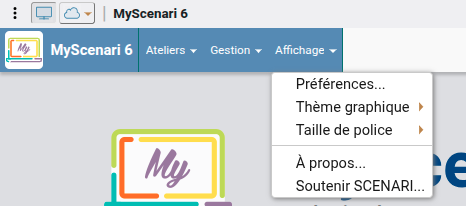 On trouve dans ce menu Affichage la “Gestion de mon compte MyScenari” ce qui n’est pas non plus attendu et qui ne dépend pas du domaine. Je le verrai mieux accroché au menu du profil à droite.
