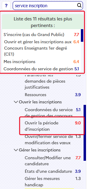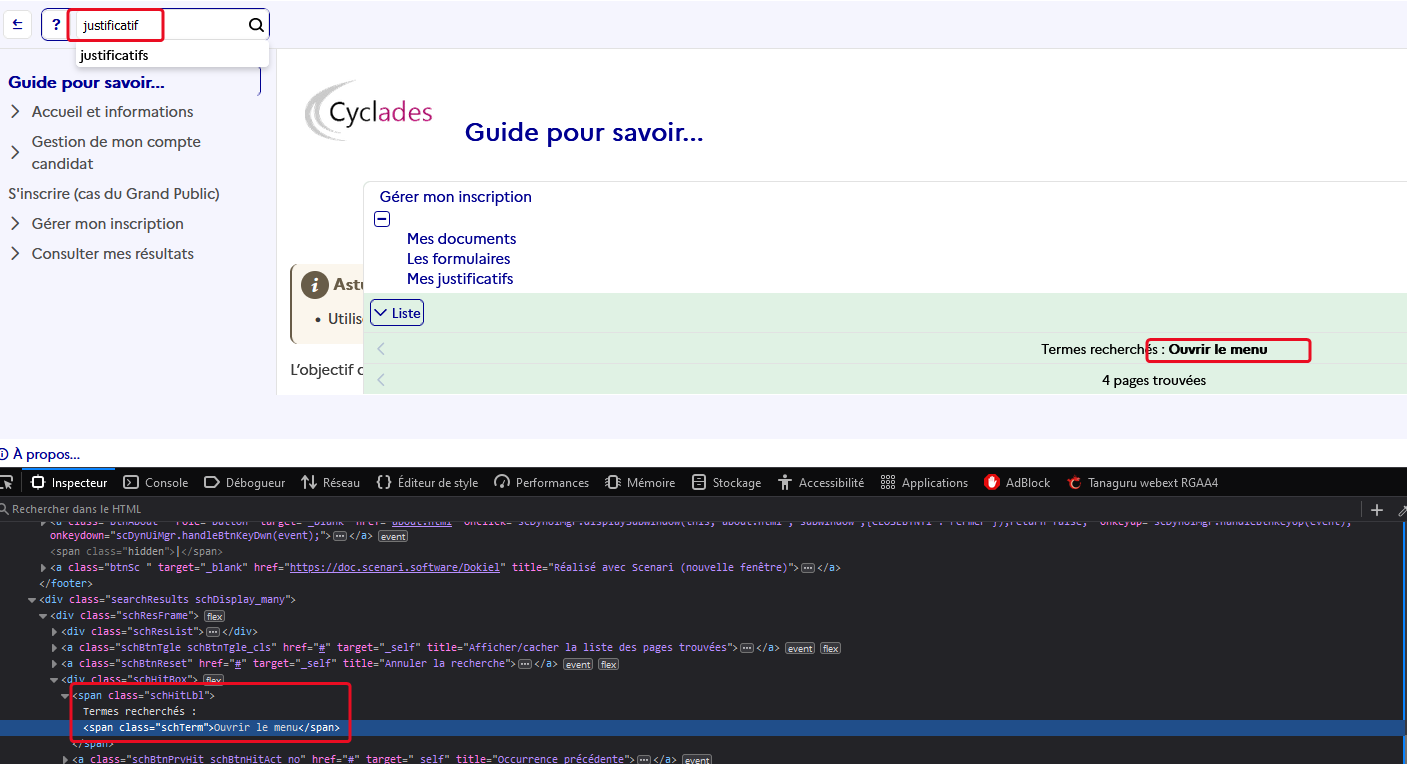 Autre remarque sur la recherche, pour une publication de guide cette fois (non reproduit sur site de référence) : dans le résultat de la recherche, quel que soit le terme recherché, il est indiqué « Ouvrir le menu » :