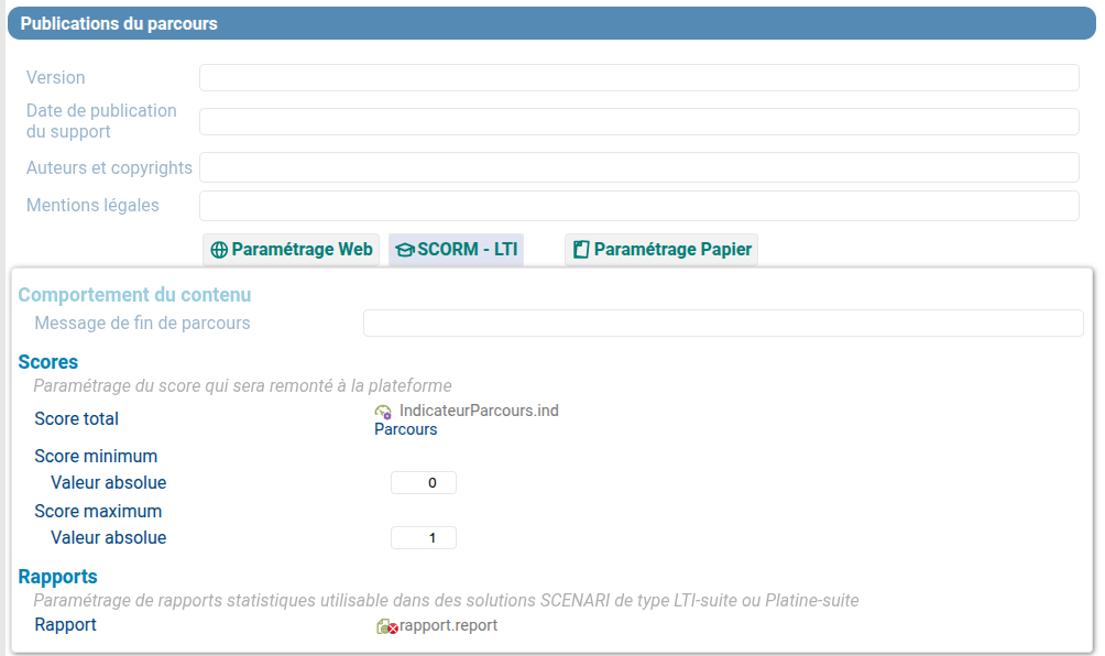 Il est possible que j’aie omis un paramétrage spécifique lors de l’export. Peux-tu m’indiquer quels réglages SCORM sont nécessaires dans Topaze pour assurer une remontée correcte des scores et du statut dans Moodle ?
