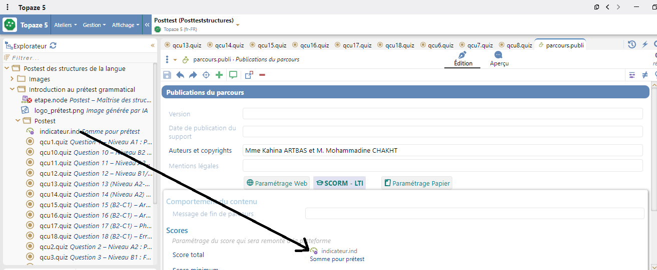 J’utilise la dernière version de Topaze 5 pour concevoir mes modules. Cependant, j’ai constaté un écart entre les scores affichés à la fin du parcours dans Topaze et ceux qui remontent dans les rapports de Moodle via le paquet SCORM.
