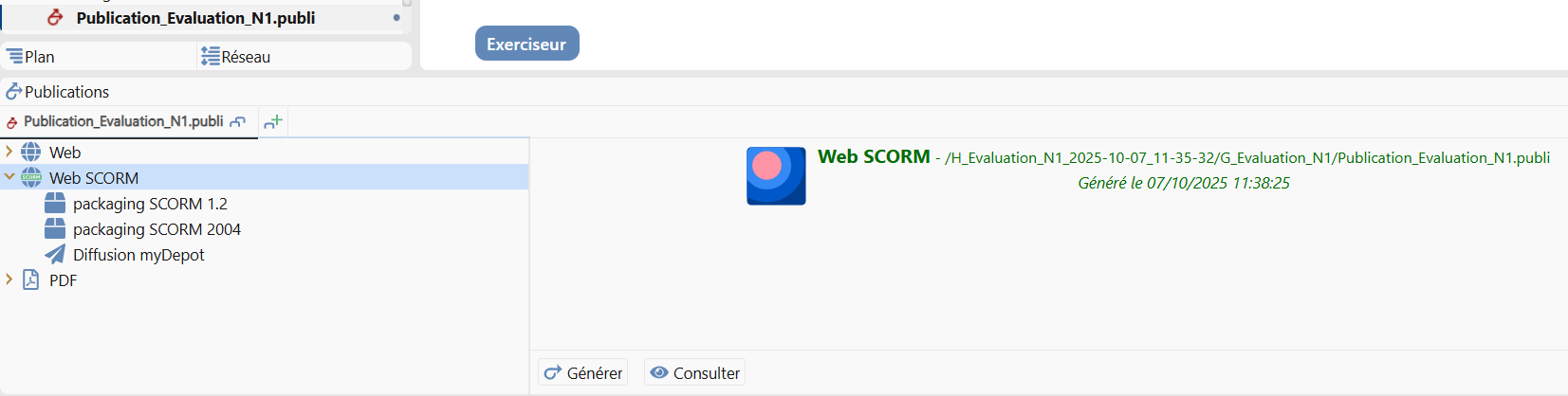 Seul les racines Publications d’évaluation de l’exerciseur et Publication web de la banque de questions proposent une publication SCORM. De plus celui-si est forcément Mono-SCO, une publication Multi-SCO d’une évaluation n’a pas de sens.
