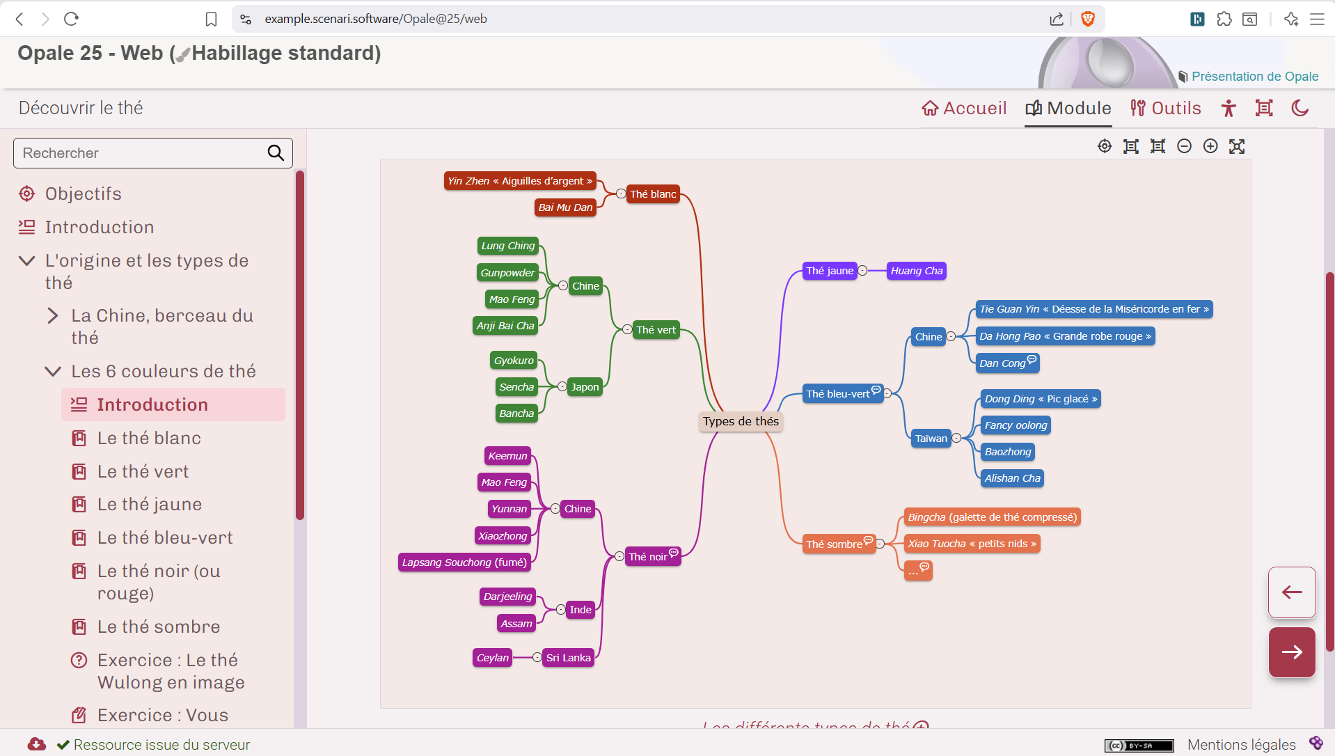 Ce même module est publié ici et la carte mentale est visible en suivant L’origine et les types de thé > Les 6 couleurs de thé > Introduction